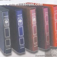 Elegante raccoglitore in plastica stampata in oro a caldo con il tradizionale meccanismo a 22 anelli a doppie leve completo di custodia in cartone rivestita di skai colorato. Lo stemma dello Stato e' stampato direttamente sul dorso e sulla prima di copertina.