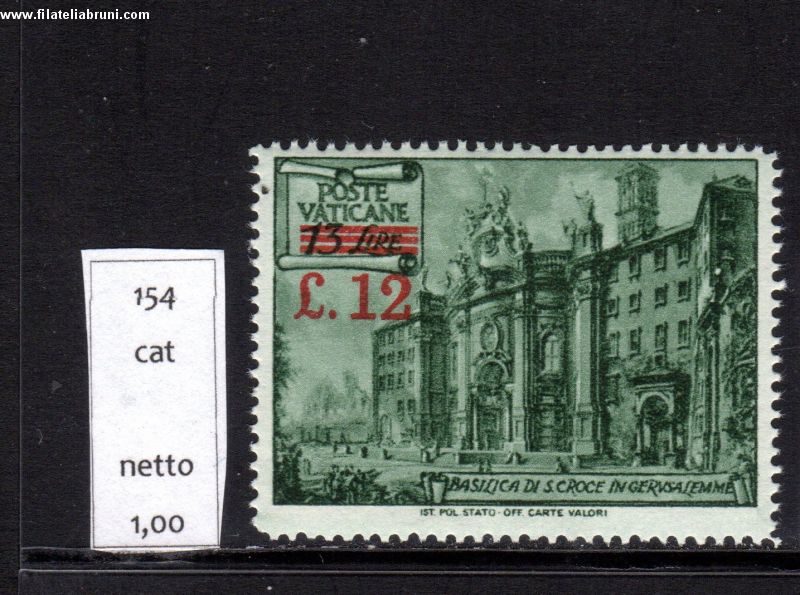 1952 Vaticano Vatikanstaat basiliche soprastampato nuovo gomma integra mnh catalogo Sassone nr 151 catalogo Michel nr 187