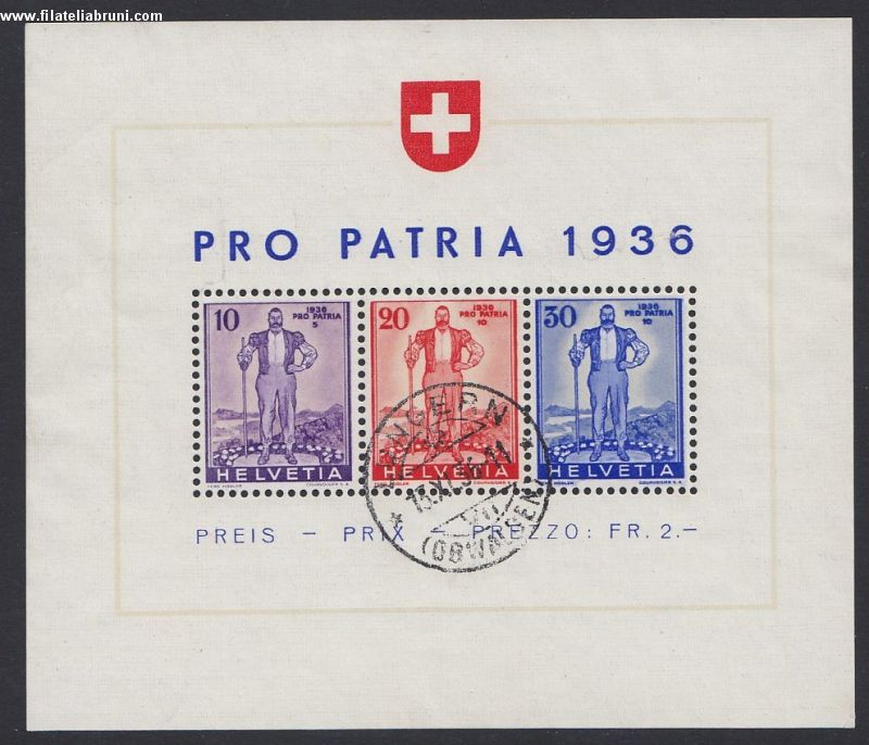 1936 Svizzera Schwweiz Helvetia a difesa della difesa nazinale foglietto usato used catalogo Unificato nr bf 2