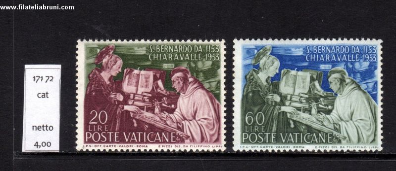 1953 Vaticano Vatikanstaat San bernardo d Chiaravalle nuovo gomma integra mnh catalogo Sassone nr 171 172 catalogo Michel nr 209 210