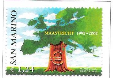10 anniversario del trattato di Maastricht gomma integra catalogo Unificato 1872