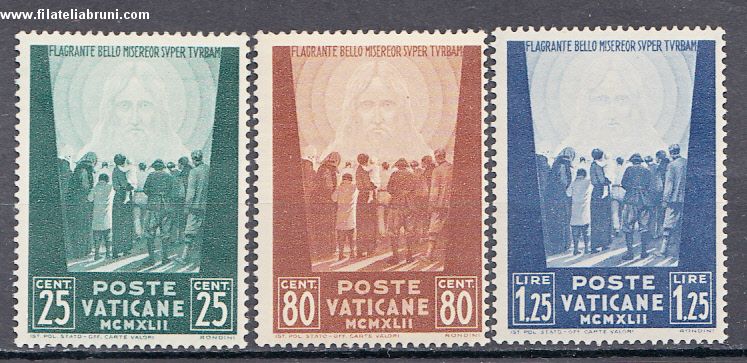 1942 Vaticano Vatikaanstaat opera di carità Pio XII nuovo gomma integra mnh catalogo Sassone nr 77 79 S.17 catalogo Michel nr 89 91