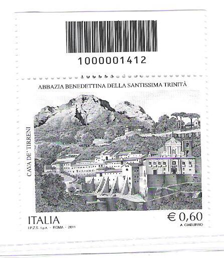 Abbazia Cava dei Tirreni con codice a barre nuovo gomma integra catalogo Unificato nr 3308 nr codice 1412