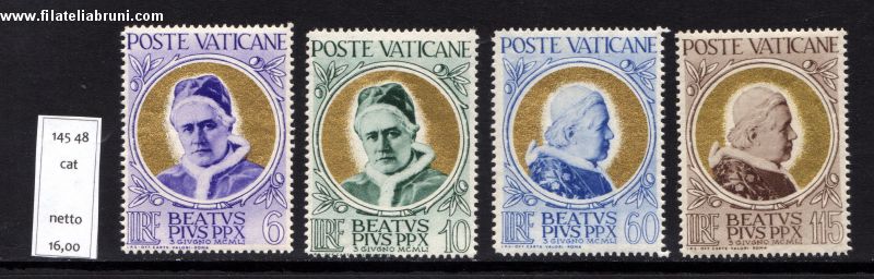 1951 Vaticano Vatikanstaat Beatificazione di Pio X Seligsprechung vin Papst Pius X nuovo gomma integra mnh catalogo Sassone nr 145 148 S.34 catalogo Michel nr 174 177