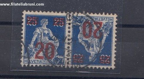 1921 Svizzera Swiss Schweiz francobolli del 1907 17 soprastampati coppia 20 su 25 tete beche Unificato nr k 15