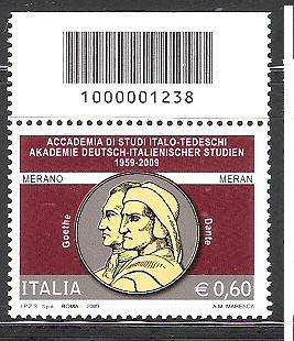 Accademia di Studi Italo Tedesca codice a barre nuovo gomma integra catalogo Unificato nr 3140 codice nr 1238