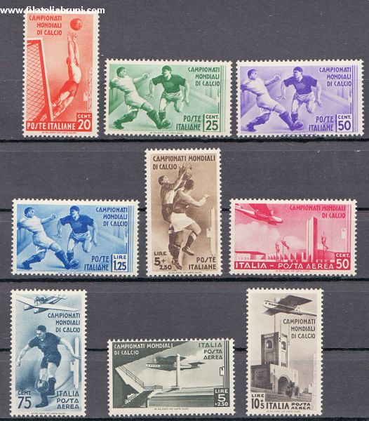 2° campionato mondiale di calcio 2nd world soccer champion nuovo gomma integra mnh catalogo Sassone nr 357 361 + aerea 69 72 s 73