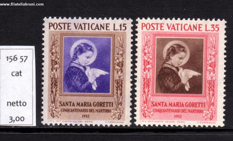 1953 Vaticano Vatikanstaat Santa Maria Goretti nuovo gomma integra mnh catalogo Sassone nr 156 157 S.36 catalogo Michel nr 190 191