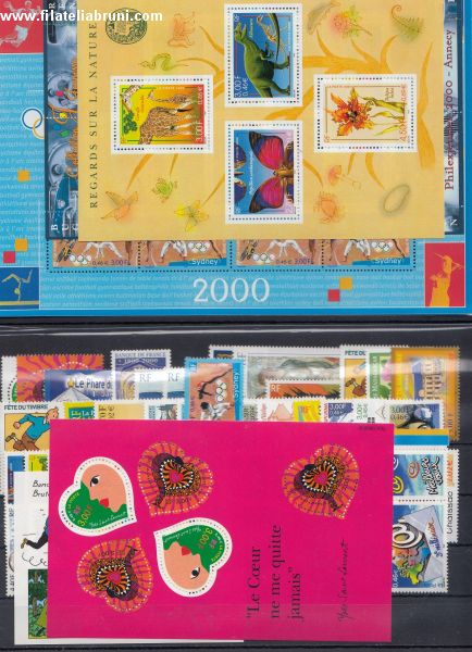 2000 Francia France Frankreich annata completa gomma integra mnh nr Unificato dal 3269 al nr 3339 manca nr 3272 3273 e 3363b incluso libretto 3272 incluso a 64 dent 13 * 13 1/2 incluso minifoglio 3314 3315