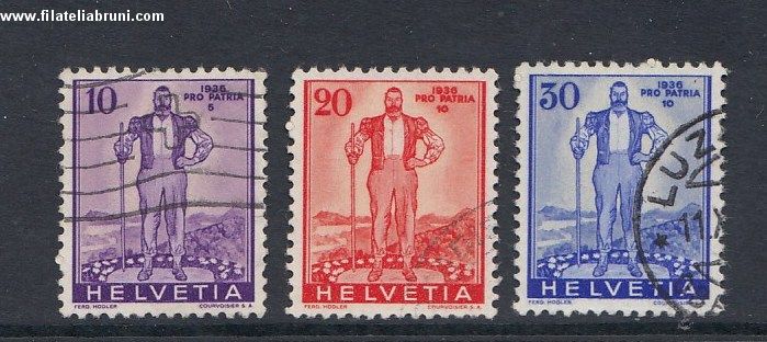 1936 Svizzera Schwweiz Helvetia a profitto della difesa nazionale usato used catalogo Unificato nr 286 288