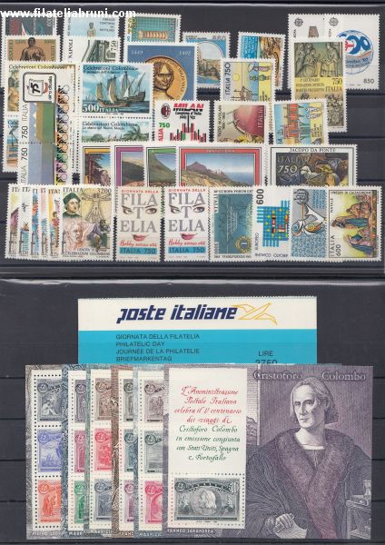 Annata completa nuovi gomma integra con foglietti Colombo Italia e libretto giornata della filatelia dentellato 13 1/4