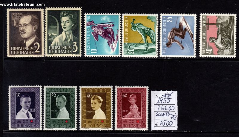 Liechtenstein nuovi gomma integra mnh annata 1955