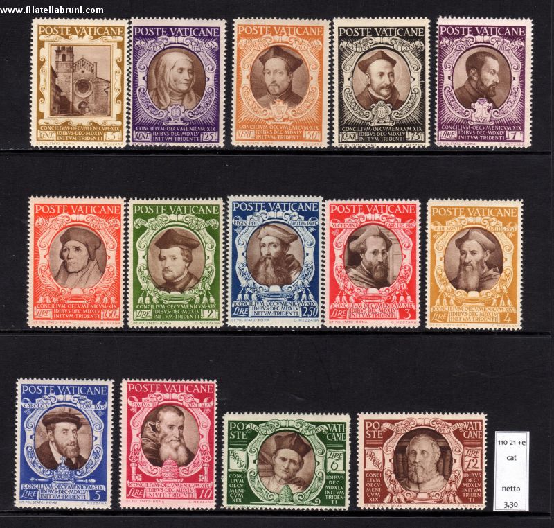1946 Vaticano Vatikanstaat concilio di Trento Tridentinischen Konzilis nuovo gomma integra mnh catalogo Sassone nr 110 121 + espressi e 9 e 10 S.28 catalogo Michel 126 139