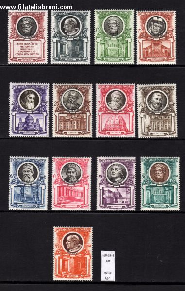 1953 Vaticano Vatikanstaat Papi e Pontifici nuovo gomma integra mnh catalogo Sassone nr 158 168 + e 13 e 14 S.38 catalogo Michel nr 192 204