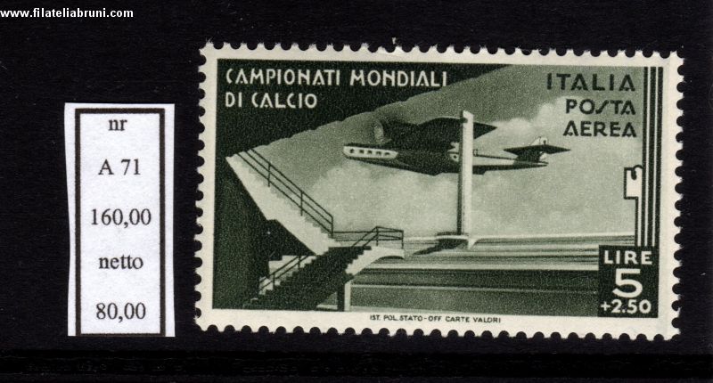 2° campionato mondiale di calcio 2nd world soccer champion lire 5 + 2.50 posta aerea nuovi gomma integra mnh catalogo Sassone nr a 71