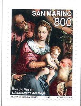 Scheda prodotto Aggiungi al carrelloNatale particolare di un dipinto di Giorgio Vasari nuovi gomma integra catalogo Unificato nr 1595