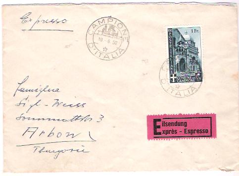 Lettera espresso affrancata con lire 1 isolato in data 19/08/50 Splendida